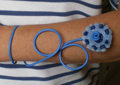 Alors, je vous montre quoi? Et bien une parure de bijoux réalisée sur place. La photo d'introduction est un gros plan du collier. Maintenant, le bracelet :