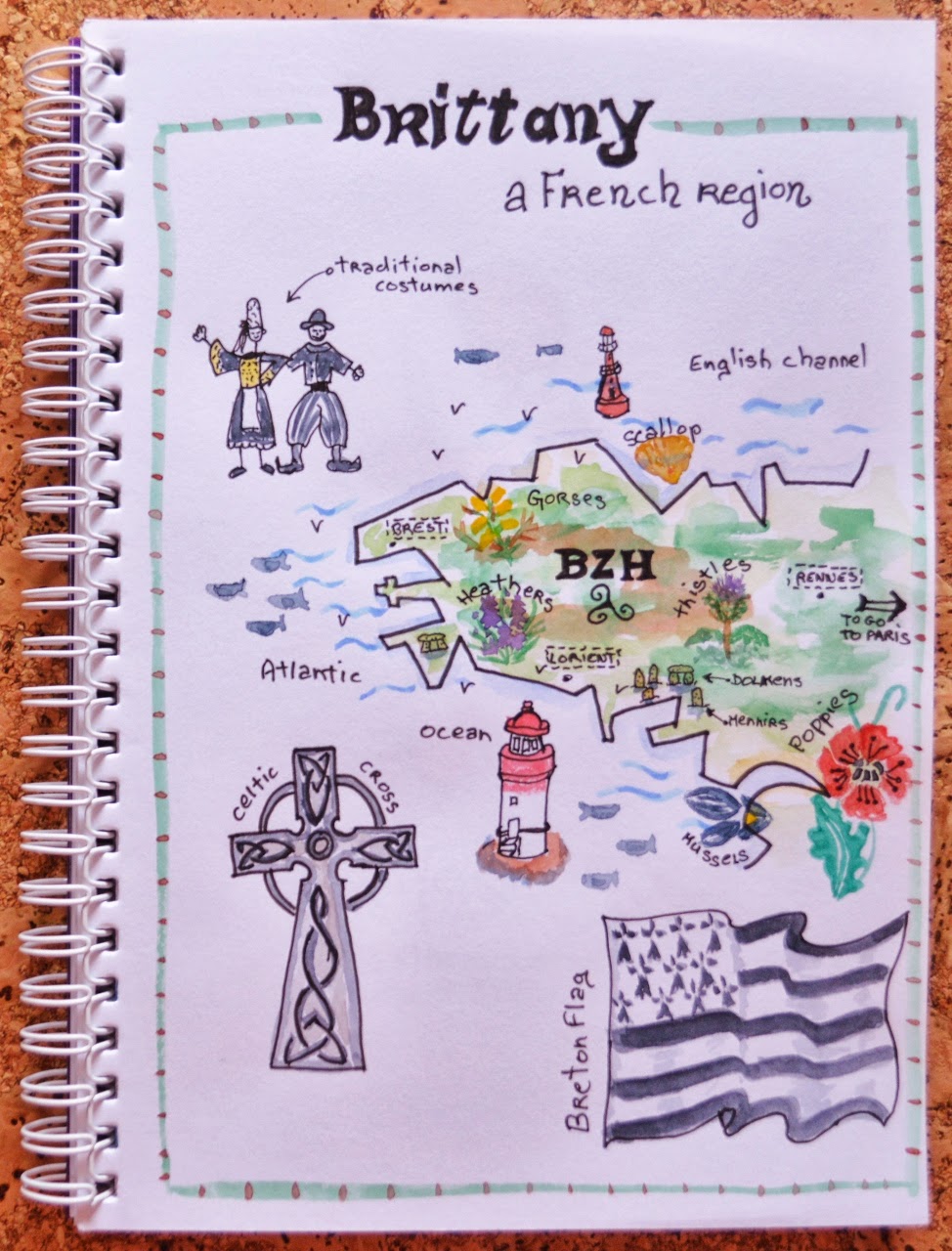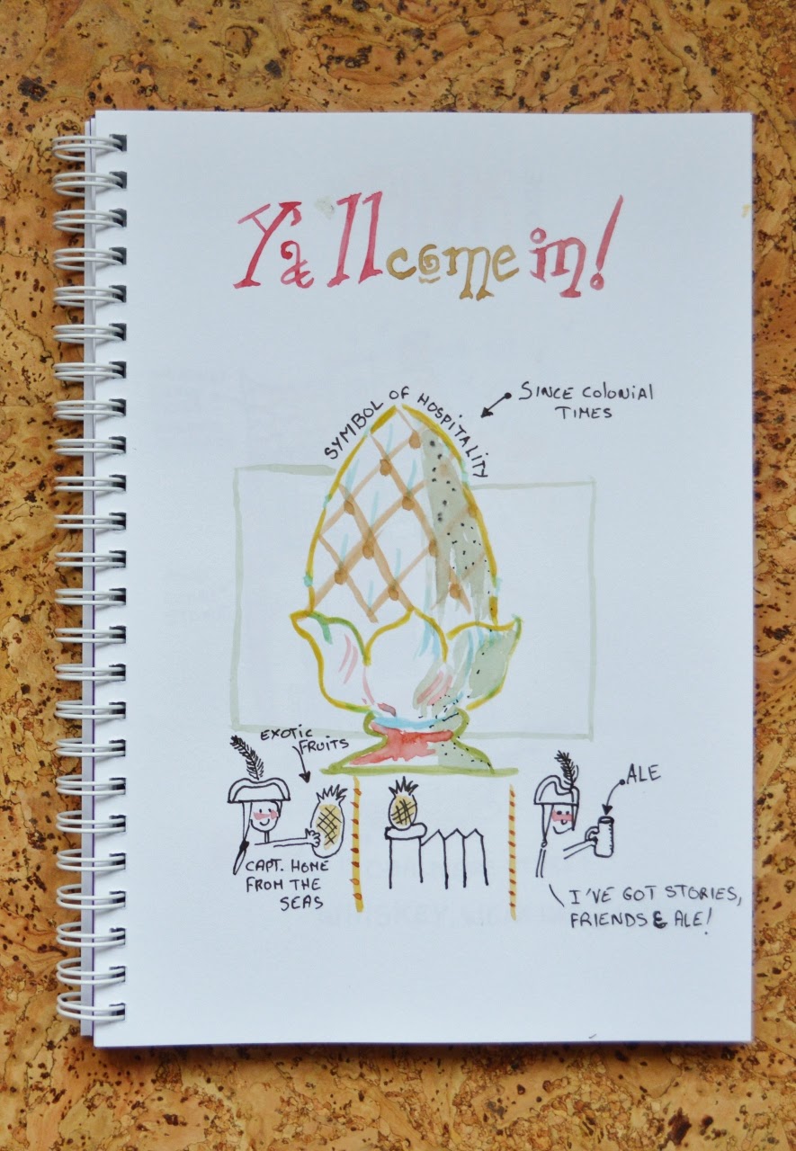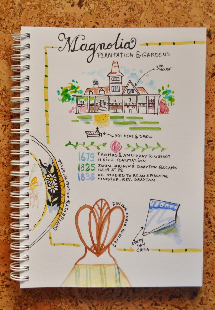 Pour aujourd'hui, je vais juste vous montrer le voyage que j'ai fait à Charleston, virtuellement certes, mais très instructif et dépaysant. Ce sont donc les pages d'applications dirigées sur les techniques de mise en page, techniques d'aquarelle et dessin.
