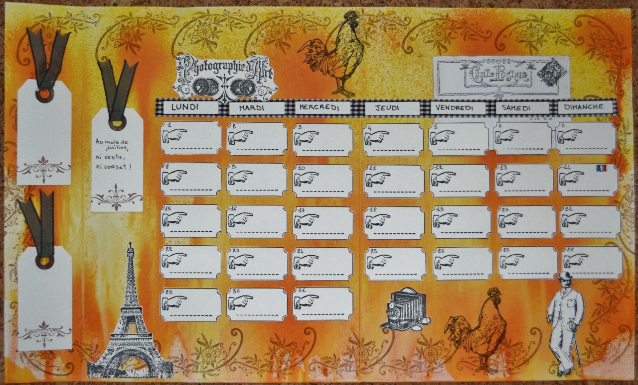 Oui, c'est en anglais. Je ne parle pas anglais ou alors comme vous : heat-gun, distress-ink, brads, flowers,... Lol!