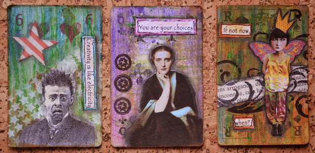 Au départ, nous avons un jeu de cartes. On va les altérer avec différentes techniques proposées par Mary Jane.
