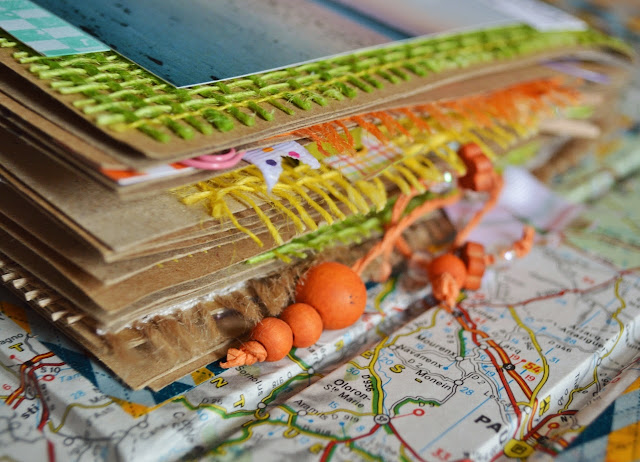 Du carton de récupération, une vieille carte routière, des feuilles cartonnées de récup' aussi, c'est ce que j'ai utilisé pour faire la structure de cet album.
